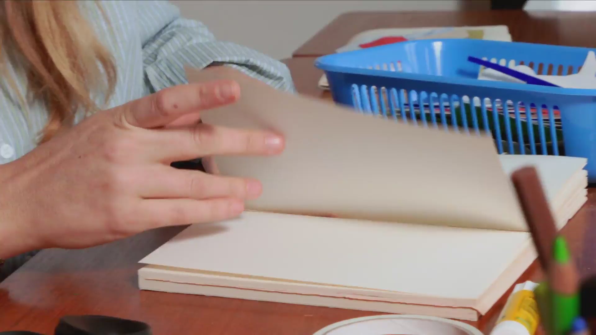 En matière de créativité, la vie quotidienne est un formidable point de départ. Là où nous fabriquons des pièces de maroquinerie, la plasticienne nantaise Amélie Dubois imagine plutôt de la poésie visuelle. À travers ses collages, la fondatrice de Maison Moche se plaît à transformer les “petits riens” du quotidien en images sensibles. Habitudes, objets, gestes et souvenirs deviennent l’essence même de son travail. Nous lui avons proposé de troquer, le temps d’un projet, son support de prédilection — le papier — pour des chutes de cuir colorées, afin de réaliser des œuvres destinées à nos vitrines. Dans son atelier, nous lui avons posé quelques questions sur cette collaboration et sur cette nouvelle façon de faire dialoguer le cuir avec le quotidien.
