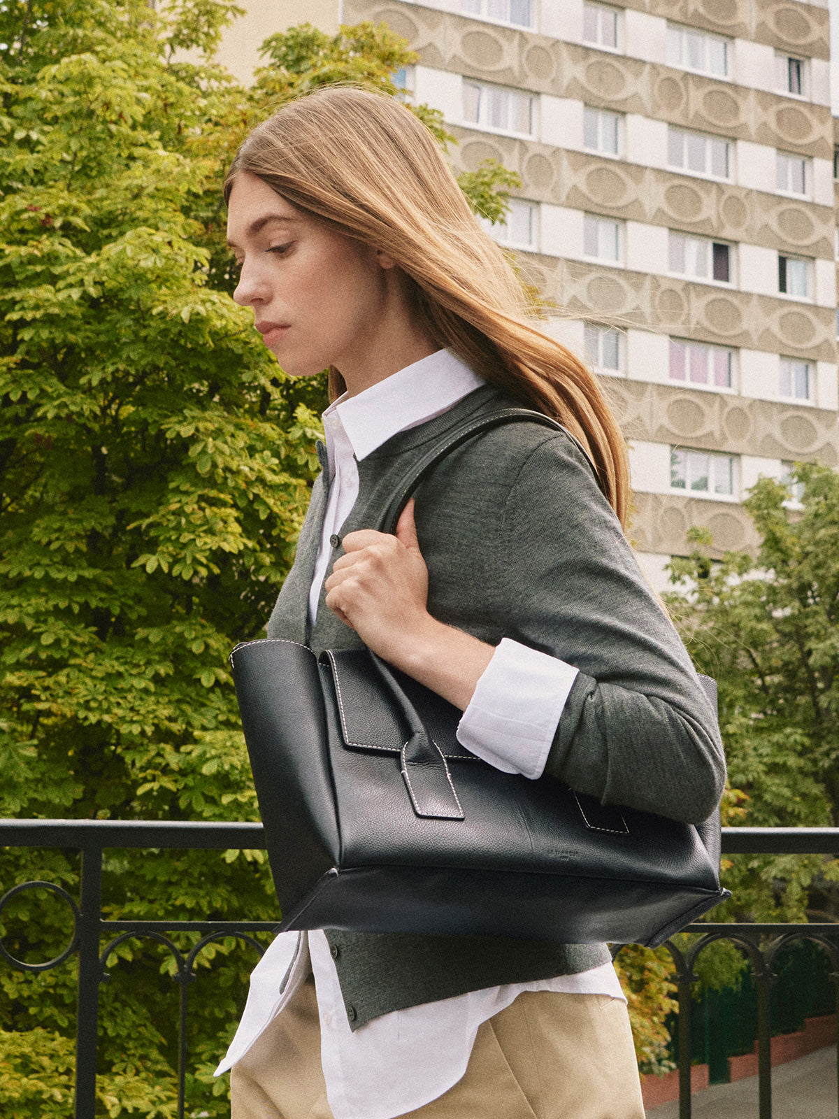 Grand sac cabas Louise en cuir grainé