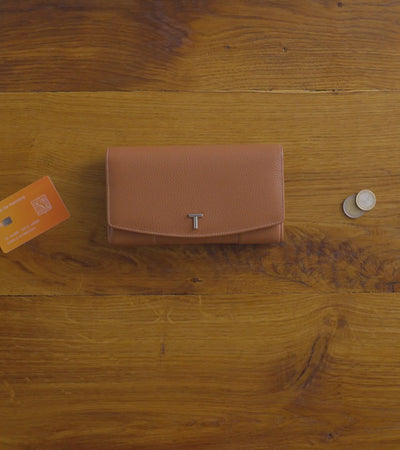 Grand portefeuille à rabat avec poche zippée. Marquage Le Tanneur et fermeture pression finition argent. Sécurité anti-RFID.