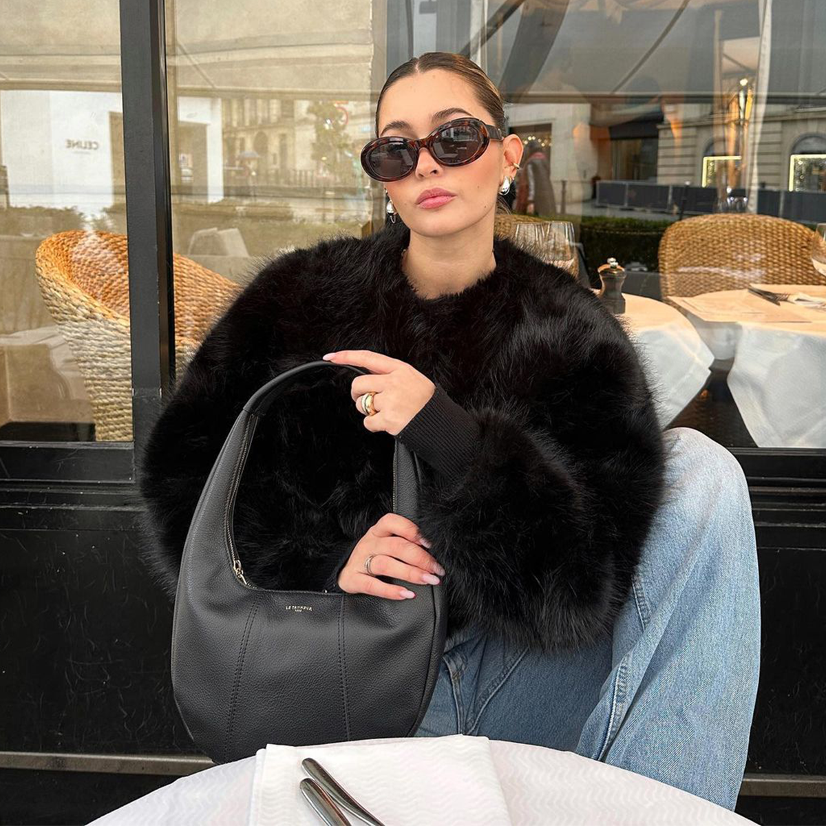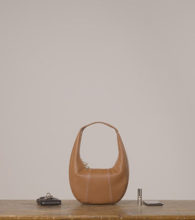 Sac hobo moyen format avec zip signature double fermeture et marquage Le Tanneur. Porté main.
